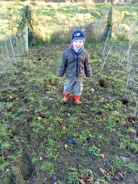 Oisín has more fun in the mud than on the paths..
